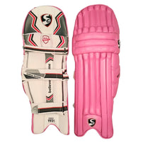 SG Test Cricket Batting Pads- Pink Step up to the crease with confidence with these SG Test Cricket Batting Legguards. With premium quality imported polyurethane facing and cotton-filled knee rolls with high-density foam reinforcement, these legguards offer superior protection and comfort. The high-density sponge-filled vertical bolster with TPU insert protects your knees, while the extra high-density foam filling in the...