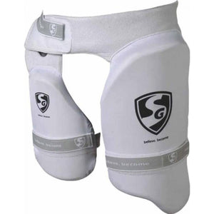 Introducing the SG Ultimate Combo Thigh Pad. This premium quality thigh pad provides protection for both your inner and outer thighs, made with ultra-high density foam and a soft absorbent back. The pre-shaped PU casing provides a comfortable and snug fit, while the elastic waist and thigh straps ensure a secure and comfortable fit. This thigh pad is perfect for both right and left-handed batsmen ( please select your orientation) and is a must-have for any cricket enthusiast.